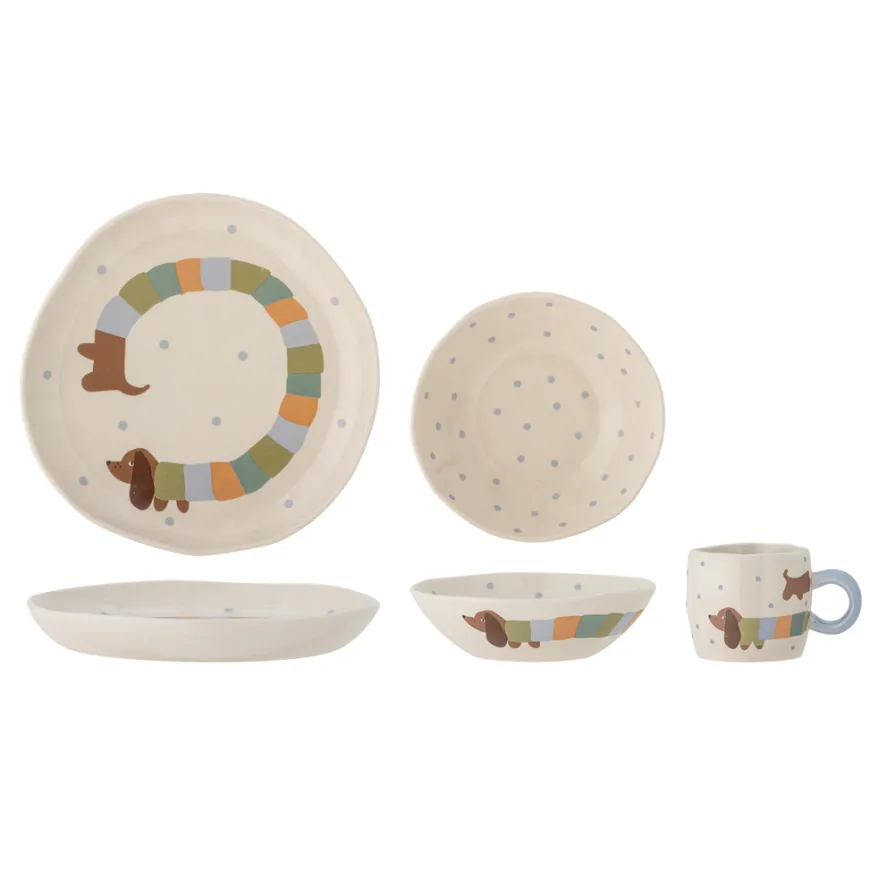 Liebevolle Designs für das Kinderzimmer: Bloomingville Geschirr-Set Hund Charlie Blue 3-teilig.