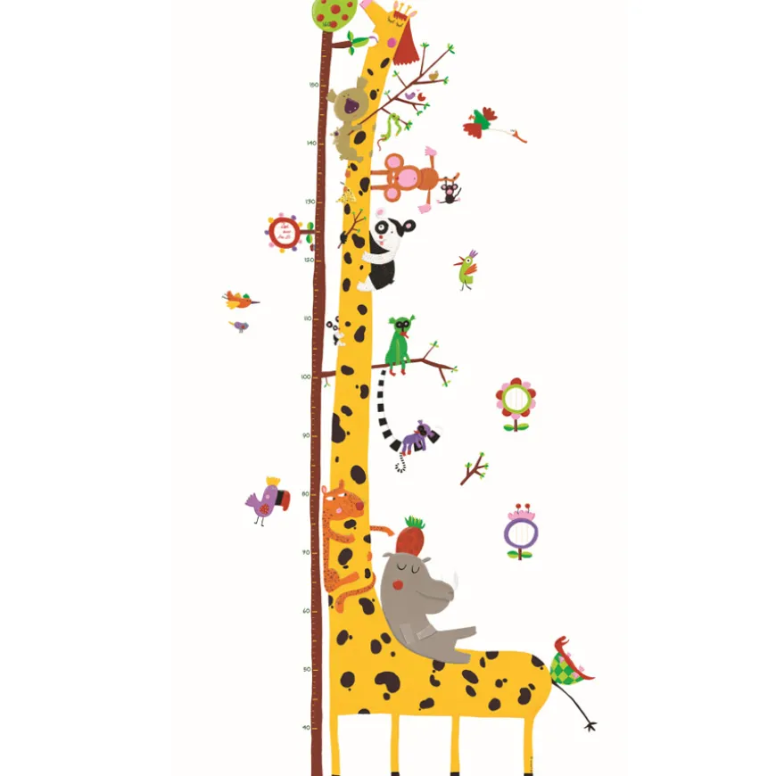 Wie schnell die kleinen Dreikäsehoch wachsen, kann man mit dieser tollen Messlatte von Djeco Zentimeter für Zentimeter verfolgen. Die Giraffe streckt sich mit ihrem langen Hals ganz nach oben, um im Gipfel des Baumes die grünen Blätter zu erreichen. Auf ihrem Rücken haben es sich ihre Freunde bequem gemacht. Nilpferd, Leopard, Affen und Vögel von Djeco begleiten die Kinder durch fröhliche Tage.