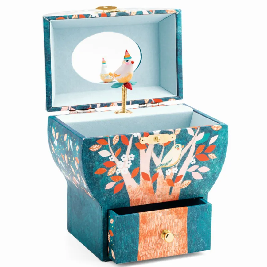 Der erste Schmuck und andere kleine Schätze haben Platz in diesem zauberhaften Schmuckkästchen von Djeco. Geschlossen schmückt es die Kommode. Offen erfreut das Djeco Schmuckkästchen mit Spieluhr „Nachtgesänge“ nicht nur die Augen, sondern auch das Ohr.
