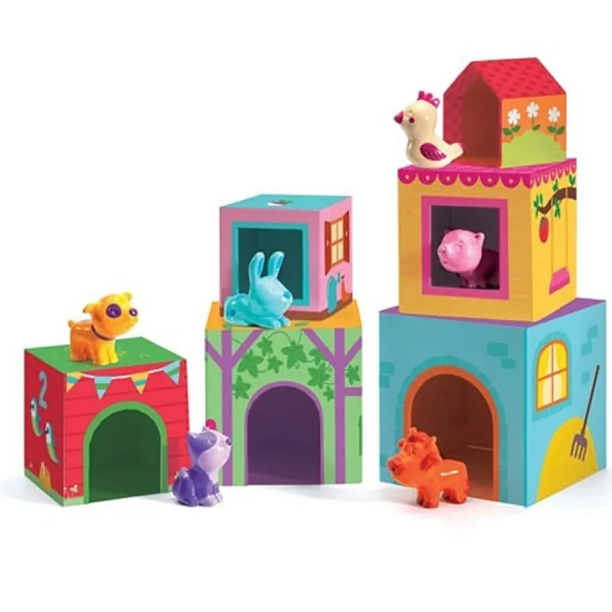 Eine wirklich süße Spielidee von Djeco ist dieser Stapelturm aus sechs Würfeln verschiedener Größe. Nicht nur, dass hier wie mit anderen Spieltürmen Koordination und Geschicklichkeit geübt werden können: Zu jedem Würfel gehört noch ein niedliches Spielzeugtier! So kann nebenher noch das Leben auf einem Bauernhof nachgespielt werden. So wird den Kleinen das Spielen auch nicht langweilig, wenn das bloße Aufeinanderstapeln an Interesse verliert.