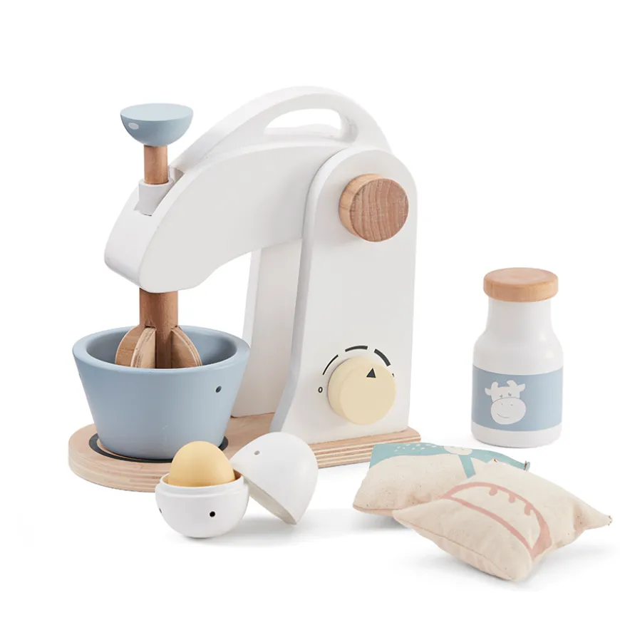 Der Kids Concept Mixer mit Zubehör eröffnet die Backsaison. Ob Eier, Milch oder Mehl – alle Zutaten für den perfekten Kuchen sind schon einsatzbereit. Liebevolle Details machen den Kids Concept Mixer zu einem Highlight in jeder Spielküche.