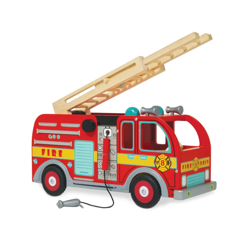 Welches Kind wünscht sich nicht irgendwann einmal ein richtiger Feuerwehrmann zu sein? Kleine Feuerwehrmänner werden das hübsche Set von Le Toy Van auf jeden Fall lieben. Das Set umfasst ein Feuerwehrauto mit ausziehbarer Leiter, Warnschilder, Lösch- und Rettungswerkzeuge.