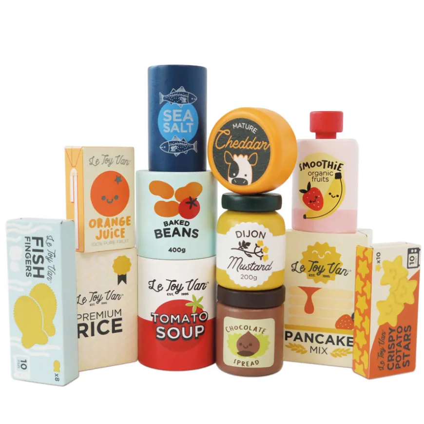 Wunderschönes Holzspielzeug: Le Toy Van Supermarkt Lebensmittel für Kaufladen 12-teilig.