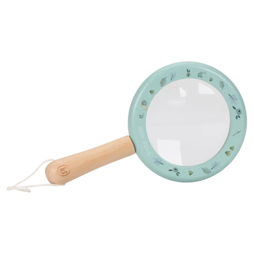 Mit der Little Dutch Lupe lässt sich die Natur und die Umgebung erforschen. Der Holzgriff der Little Dutch Lupe sorgt für einen guten Halt in der Hand und durch die praktische Kordel ist die Lupe immer griffbereit. Das Vergrößerungsglas verfügt über eine integrierte extra kleine Linse für eine noch detailliertere Betrachtung.