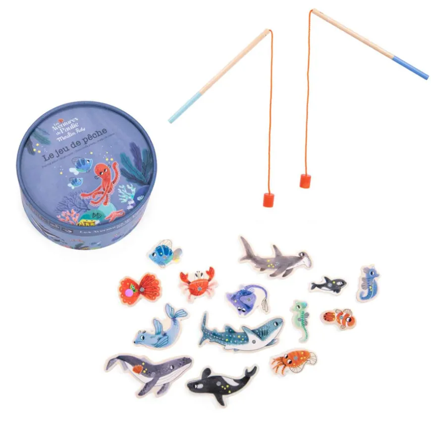 Für ewigen Spielspaß: das Moulin Roty Angelspiel. Wer schafft es, die meisten Fische und Meerestiere innerhalb kurzer Zeit zu angeln? Die lustigen Tiere freuen sich schon auf das Moulin Roty Angelspiel und sind für jedes Abenteuer bereit.
