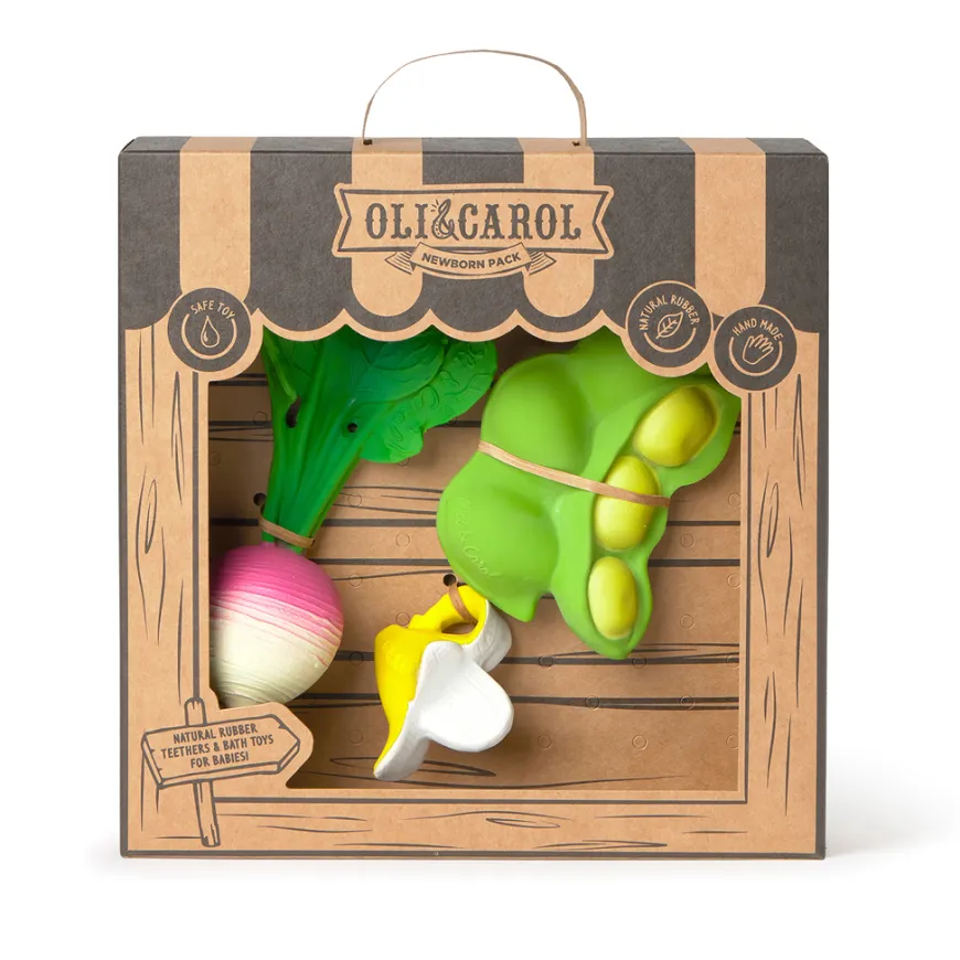 Hochwertige und handgefertigte Babyspielzeuge und Beißringe: Oli & Carol Geschenkbox für Neugeborene Radish.
