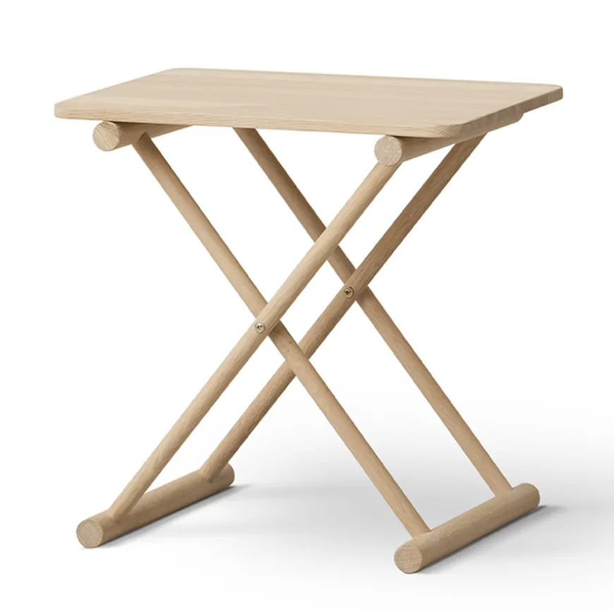 - Das X-Gestell und die Tischplatte des Nachttischs sind aus massiver, weiß geölter Eiche gefertigt. Zur Oberflächenbehandlung wird ungiftiges Weißöl verwendet.
