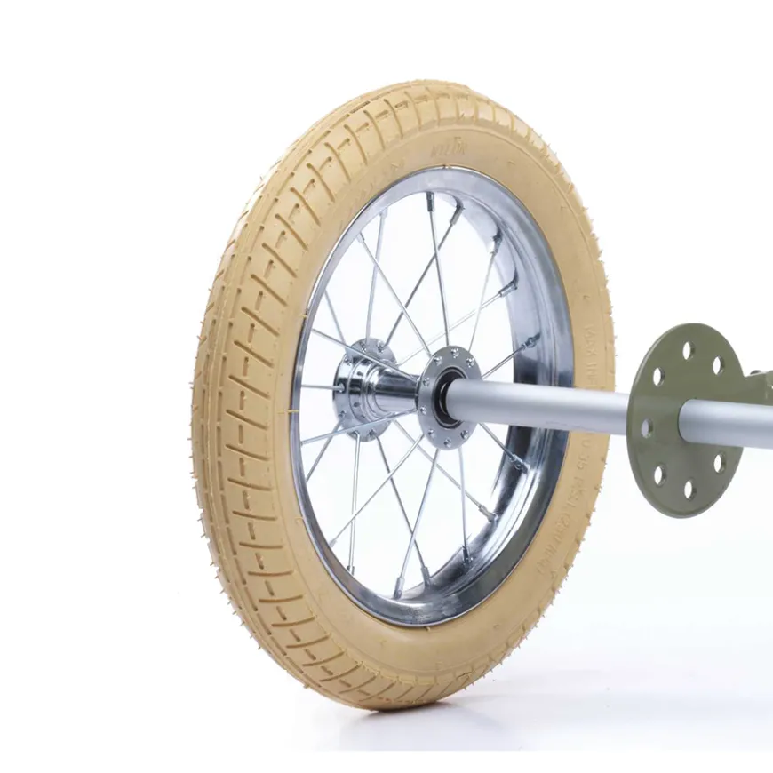 Eine nachhaltige Anschaffung: Mit diesem Trybike Umbau-Kit lassen sich Trybike Laufräder im Steel Vintage Design umrüsten, um als Dreirad gefahren zu werden. Somit lässt sich ein 2-in-1-Laufrad von Trybike an die Geschwister weiterreichen. Das Umbau-Kit ist auch im Design Steel Black erhältlich.