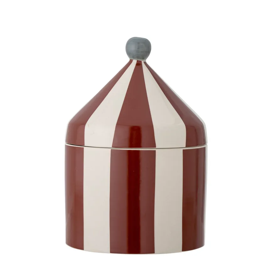 Große und kleine Geheimnisse finden in der Bloomingville Dose ihren Platz. Die Dose, die an ein Zirkuszelt erinnert, ist auf Schreibtisch oder Nachtisch auch ein hübsches Dekoelement.
