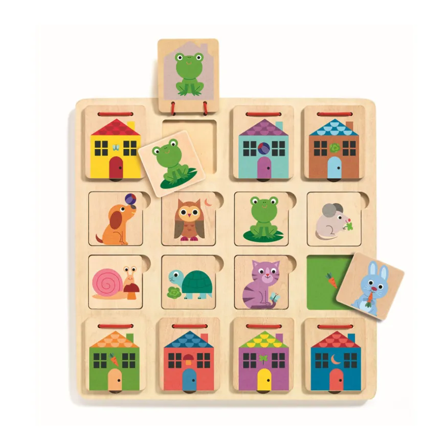 Das lustige Versteckspiel Cabanimo von Djeco fördert den Spieltrieb und die Neugier von Kindern auf besonders schöne Weise. Die farbenfroh gestalteten Spielsteine zeigen unter anderem Tiere, Bälle und Häuser. Beim Djeco Versteckspiel Cabanimo müssen die einzelnen Bilder nun dem passenden Loch zugeordnet werden – wer wohnt wo?