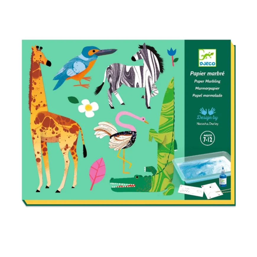 Mit Djeco wird das spielerische Erlernen künstlerischer Fähigkeiten zum riesig großen Spaß! Dieses tolle Set von Djeco ist ideal, um sich mit der Technik des Marmorierens vertraut zu machen. Beinahe erscheint es wie Zauberei, wenn sich die herrlichen Farben, die zuvor in einem Wasserbad gemischt wurden, auf dem Papier abzeichnen und sich in wunderschöne Sticker verwandeln,