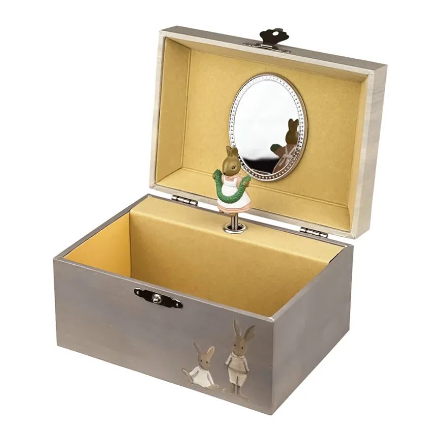 Schau mal! Die ganze Hasenfamilie hat sich versammelt, um dem kleinen Schatz mit diesem zauberhaften Schmuckkästchen von Egmont Toys eine Freude zu bereiten. Und das Besondere daran? Im Inneren der hübschen Schmuckdose von Egmont Toys wartet eine tolle Überraschung! Die Hasendame hat sich extra hübsch gemacht und ihr schönstes Kleid herausgesucht, um sich zu einer wunderschönen Melodie im Kreis zu drehen.