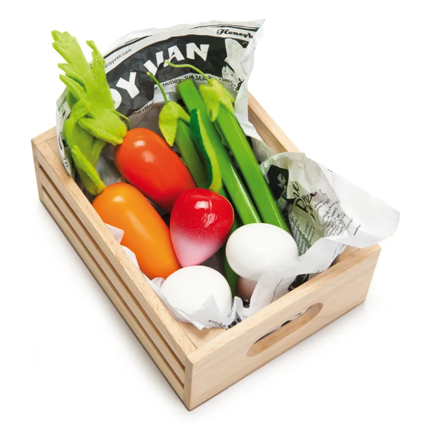 Da macht der Einkauf Spaß! Ob Karotte, Pilz oder Radieschen – da bekommt man direkt Appetit. Der wunderschöne Gemüsekiste ist eine tolle Ergänzung für jede Spielzeugküche oder den Kaufladen. Mit vielen zauberhaften Details liebevoll gestaltet, von Hand gefertigt und wie bei allen Le Toy Van Artikel wird sehr viel Wert auf höchste Qualität, Nachhaltigkeit und erstklassige Materialien gelegt.