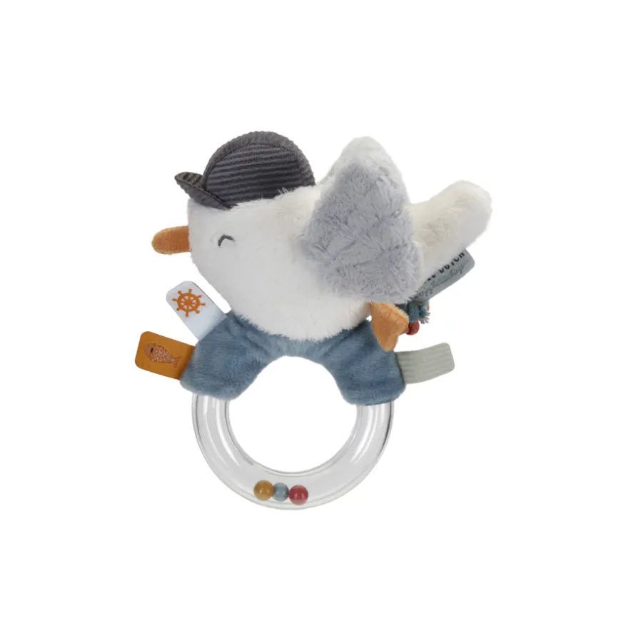 Macht immer gute Laune: die Little Dutch Ringrassel Sailors Bay. Das Highlight dieser Rassel ist die flauschige Möwe, die vergnügt lächelt. Mit der Little Dutch Kreation können sich die Kleinen nach Belieben beschäftigen – so bleibt Langeweile ein Fremdwort!