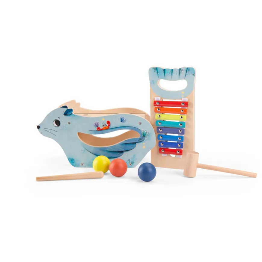 Liebevoll entworfen und illustriert: Moulin Roty Kopfspiel mit Xylophon Paulie.