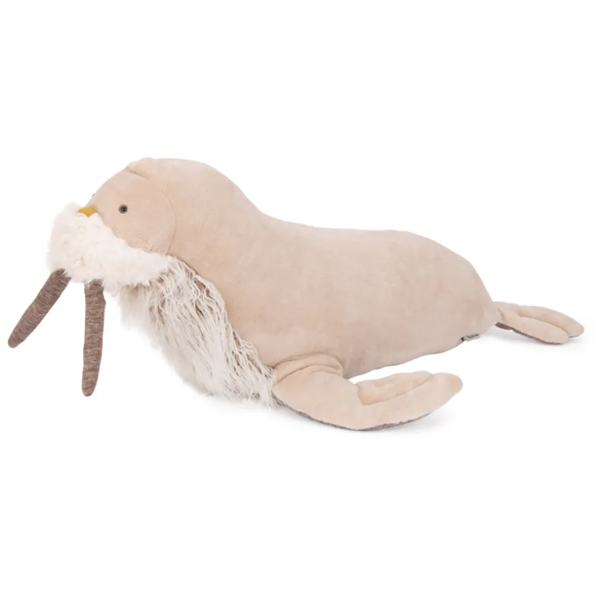 Dieses von Moulin Roty mit Liebe zum Detail gestaltete Walross ist der ideale Freund zum Kuscheln, zum Liebhaben und ein treuer Begleiter in allen Lebenslagen. Mit seiner herrlich weichen Haptik schmeichelt er der Haut und lädt zu vielen Momenten des Wohlfühlens ein. Dank seiner imposanten Größe ist das Walross von Moulin Roty zudem ein tolles Sitz- oder Liegekissen für die kleine Pause zwischendurch.