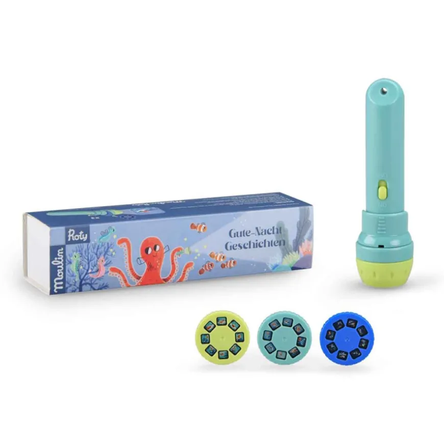 Geschichten erhalten mit dieser Moulin Roty Projektionsleuchte eine ganz besondere Note. Die einzelnen Bilder geben tolle Inspirationen zum Geschichtenerzählen – hier sind der Fantasie keine Grenzen gesetzt. Die Moulin Roty Lampe bereitet Freude und schenkt Entspannung – perfekt für eine gemütliche Reise ins Land der Träume.