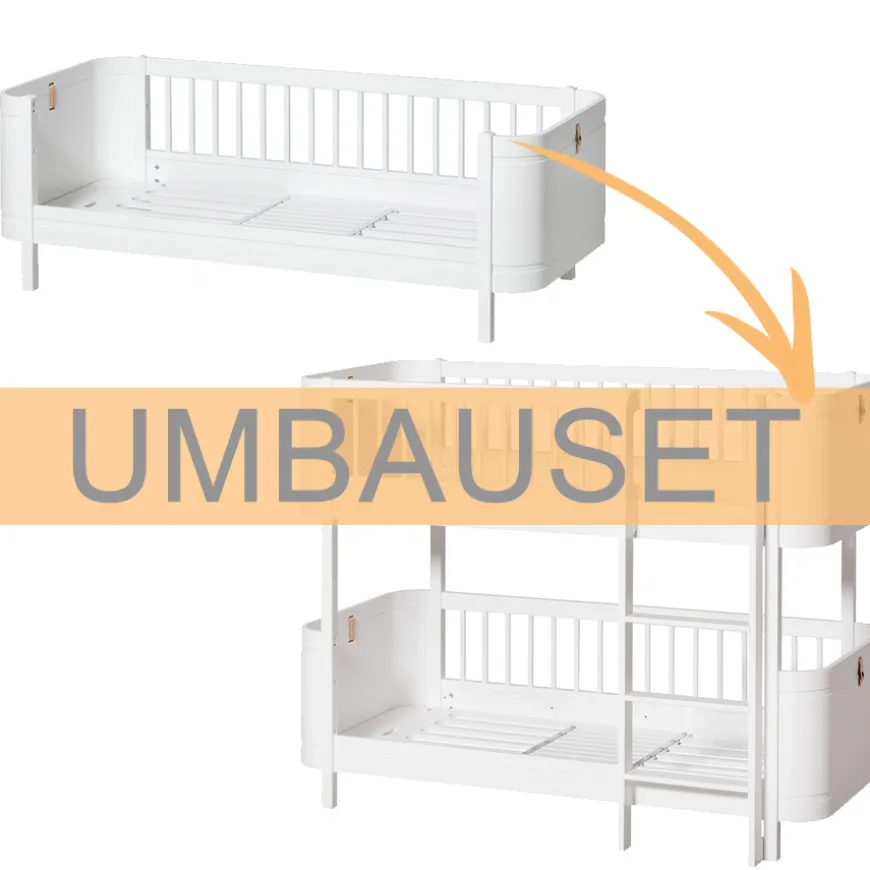 Mit diesem Oliver Furniture Umbauset lässt sich das Wood Mini+ Juniorbett zum halbhohen Etagenbett Weiß umbauen.