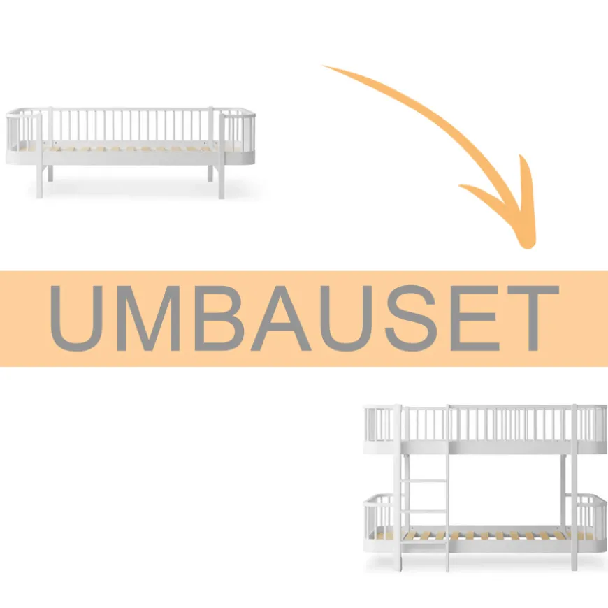 Bauen Sie Ihr Bett nach Ihren Wünschen um mit dem Oliver Furniture Umbauset Wood Original Bettsofa zum halbhohen Etagenbett weiß.