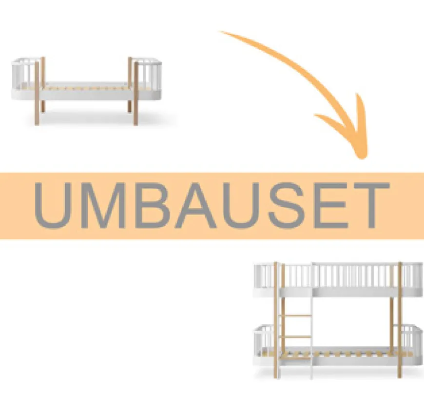 Bauen Sie Ihr Bett nach Ihren Wünschen um mit dem Oliver Furniture Umbauset Wood Original Juniorbett zum halbhohen Etagenbett weiß/Eiche.