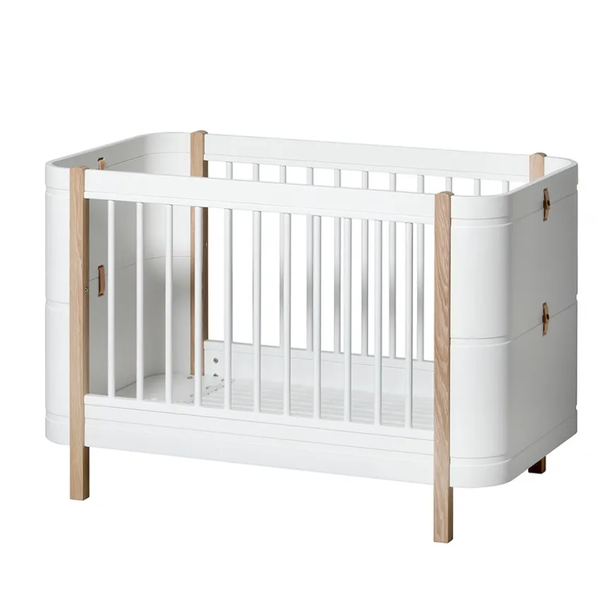 Das Oliver Furniture Wood Mini+ Babybett verfügt über mehrere praktische Funktionen, wie einen höhenverstellbaren Lattenrost mit 2 Positionen und 3 abnehmbaren Gitterstäben, die dem Kind das selbstständige Ein- und Aussteigen erleichtern. So begleitet das Bett das Kind durch die ersten drei Lebensjahre und passt sich den Bedürfnissen des Kindes perfekt an. Durch den Zukauf verschiedener Umbausets kann das Bett z.B. in ein Juniorbett oder Hochbett verwandelt werden. Das Design des Oliver Furniture Wood Mini+ Babybetts verbindet ein langlebiges Konzept, bei dem das Bett „mitwächst“ oder an Geschwisterkinder weitergegeben werden kann, mit höchster Handwerkskunst und hochwertigen Materialien.