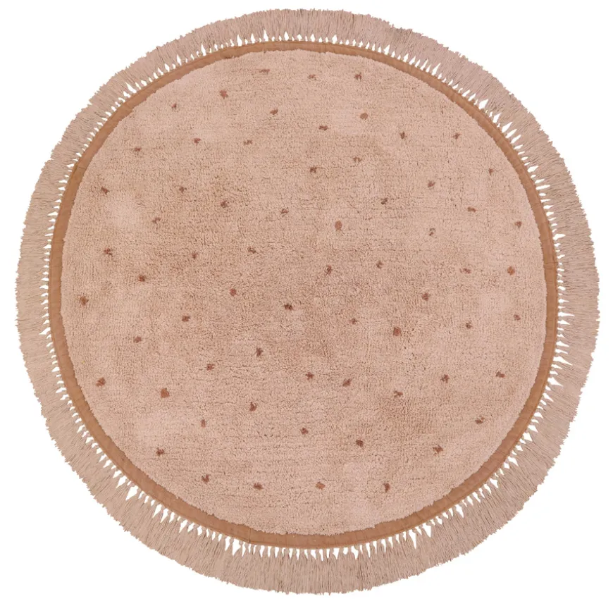 Der Tapis Petit Teppich Juul dot verzaubert in mädchenhaftem Pink! Geziert wird der runde Teppich durch kontrastfarbene Punkte, die dem Design eine verspielte Note verleihen. Auch die Bordüre setzt wundervolle Akzente und harmoniert perfekt mit der kreativen und doch zeitlosen Tapis Petit Optik.